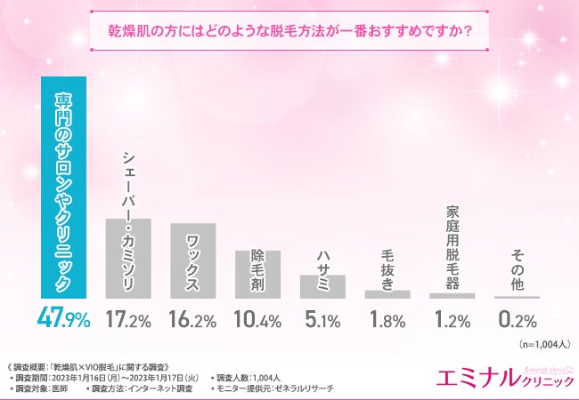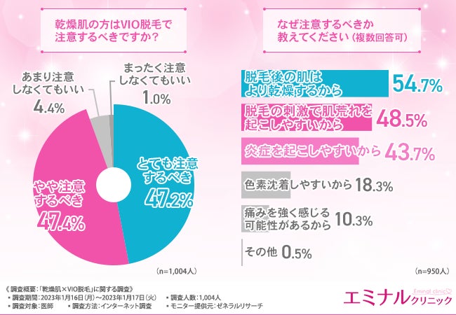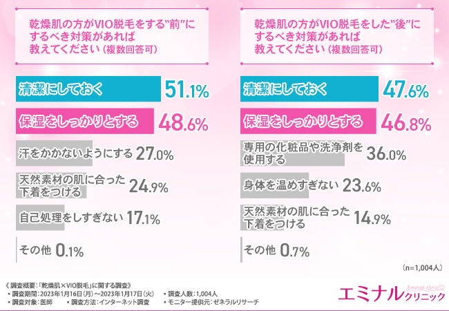 そこで今回、医療脱毛のエミナルクリニック(https://eminal-clinic.jp/lp01/?refmedia=11073)は、全国の医師を対象に、「乾燥肌×VIO脱毛」に関する調査を実施しました。