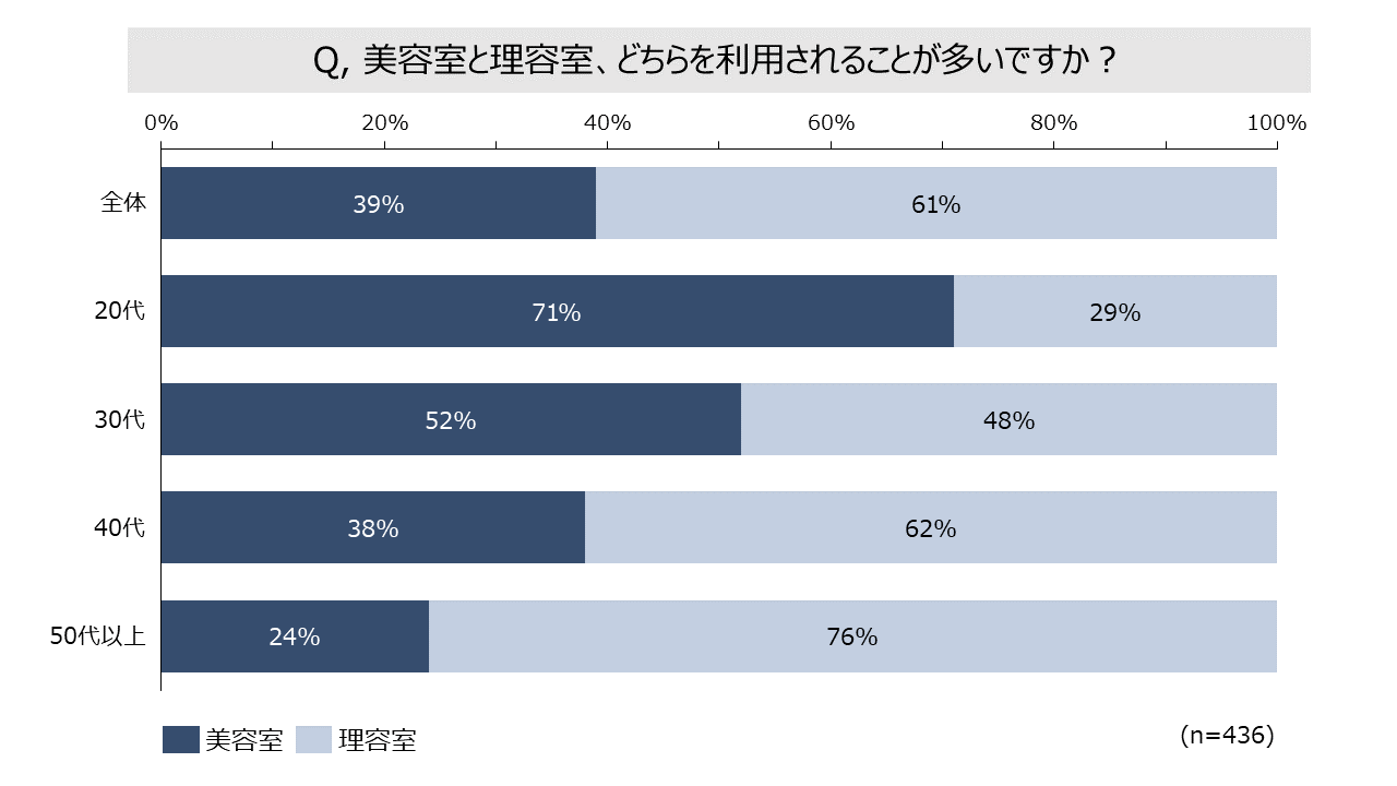 2. 20代、30代は美容室、40代以上は理容室利用が多数。