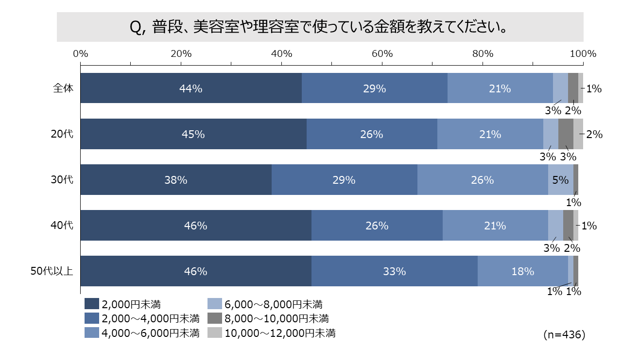 1. 20~40代の概ね30%は美容室、理容室で4,000円以上使用。