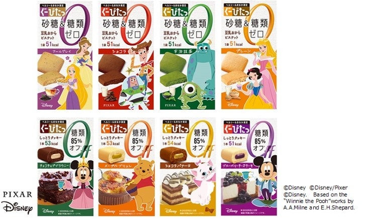 上図:左から「ぐーぴたっ 豆乳おからビスケット(アールグレイ/ディズニー・ショコラ/ディズニー・抹茶/ディズニー・プレーン/ディズニー)」