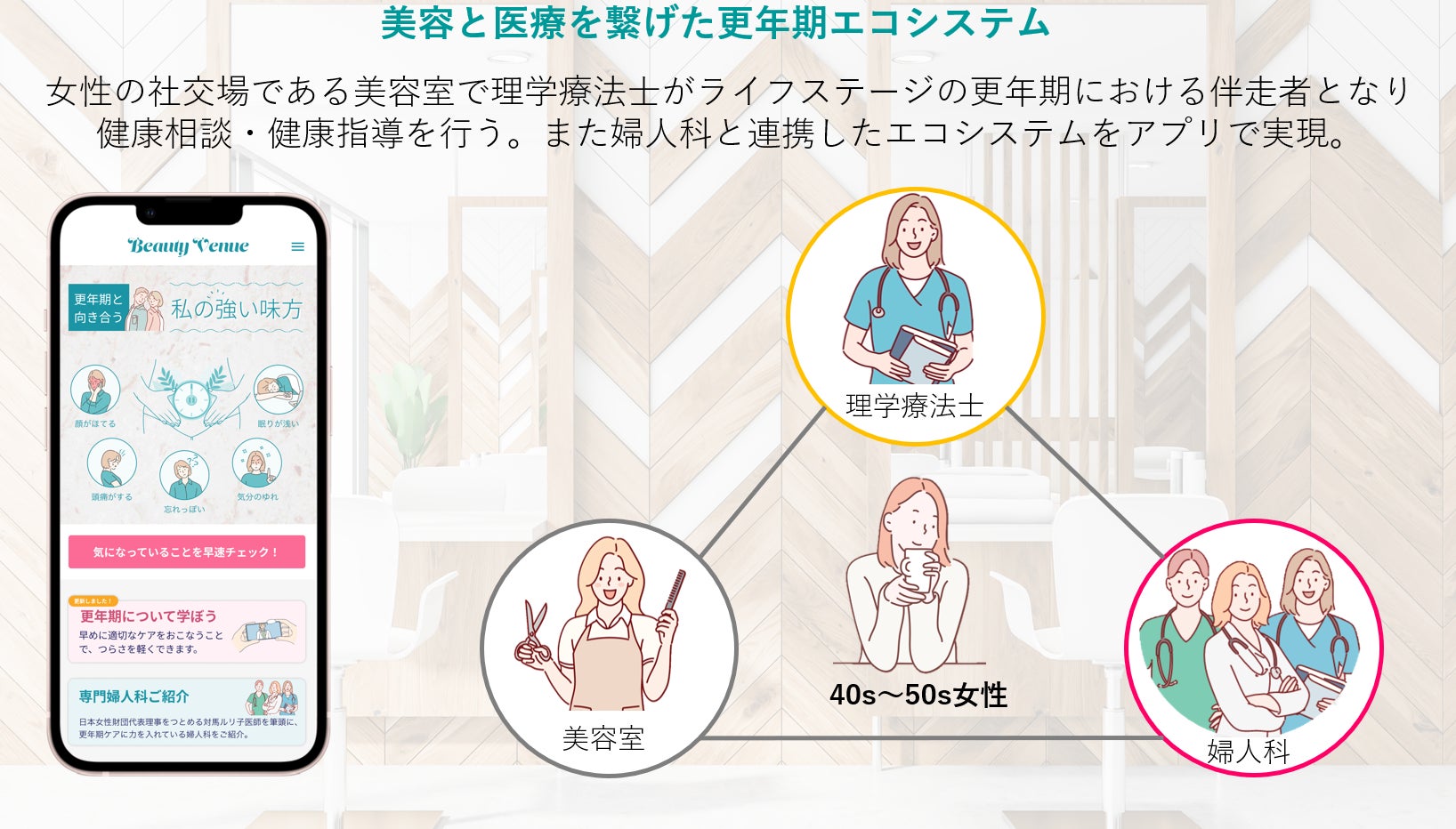“更年期セルフケア”は理学療法士が美容室に入店し更年期症状で苦しむ女性に提供できる仕組みを構築しています。