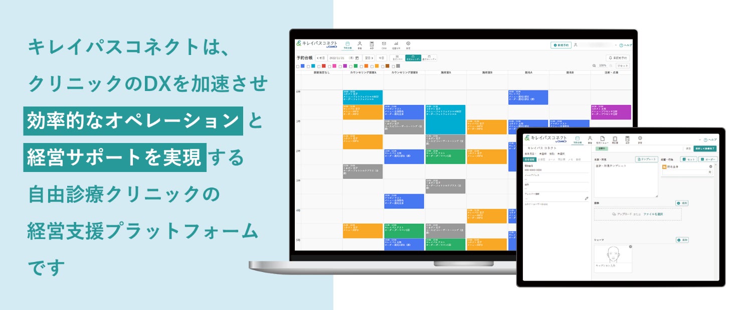 「キレイパスコネクト byGMO」をご利用になると、予約管理・カルテ・会計・経営分析など、それぞれ異なるツールで管理することで煩雑になっていた業務を一括管理することができるようになります。また、直感的に操作ができるシンプルな設計により、使い方に悩まないストレスフリーで効率的なオペレーションを実現いたします。さらに、クリニックの利便性向上によりロイヤルカスタマーの創出・収益最大化をサポートしてまいります。