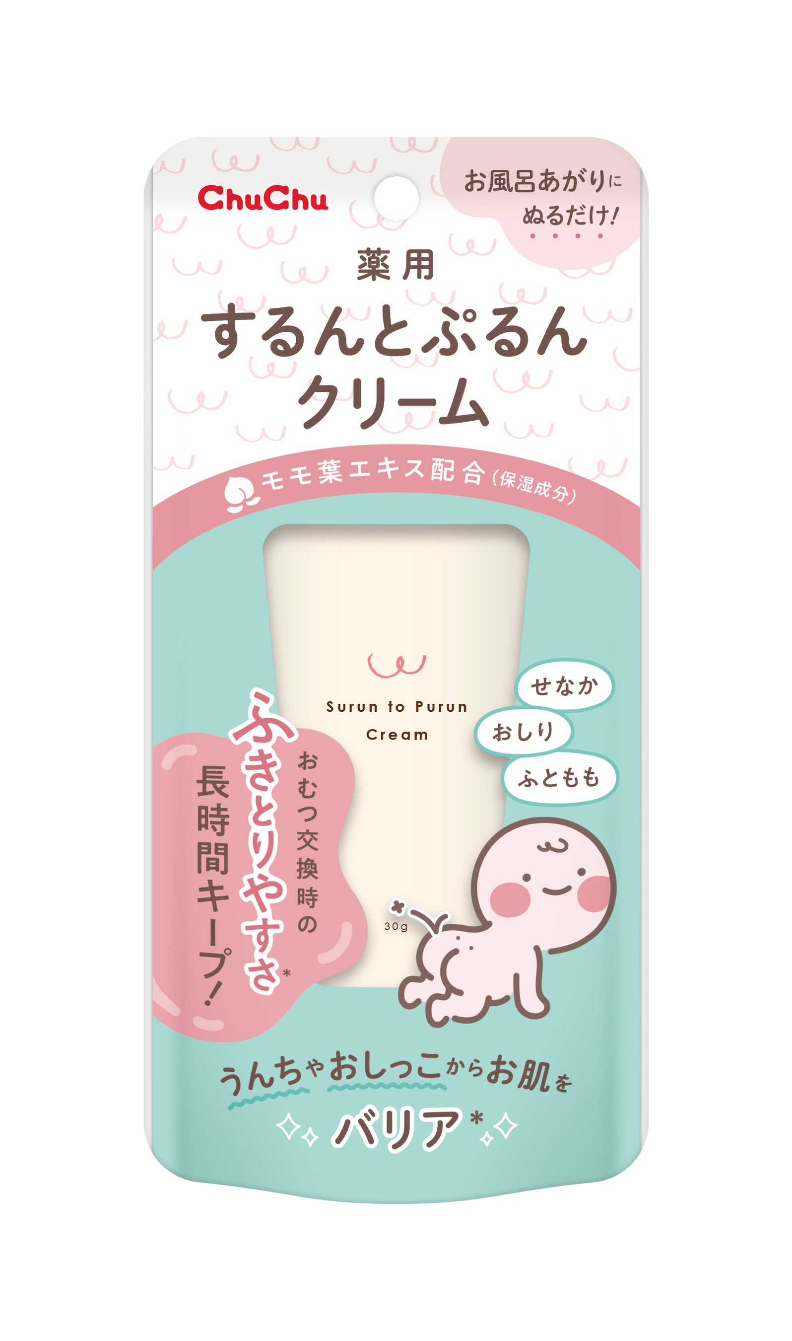 「薬用するんとぷるんクリーム」は、1日平均5~10回と言われる赤ちゃんのおむつ替えによる肌トラブルなどの悩みを解消する薬用バリアクリームです。