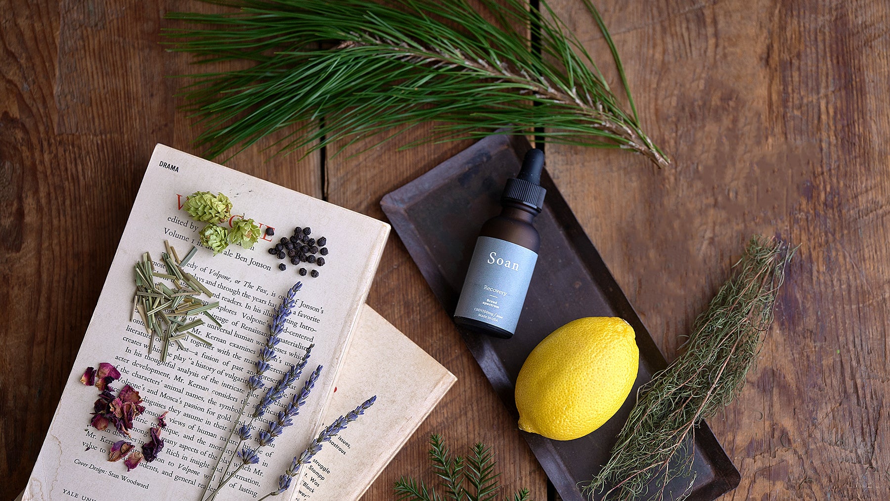 Soanの植物由来の生命力を恵むCBDオイルは、商品に合わせてオレンジやレモンに含まれるリモネン、レモングラスから取れるシトラール果実やラベンダーやベルガモットから取れるリナロールなどの実や植物から抽出した天然成分テルペンを絶妙な割合で配合。