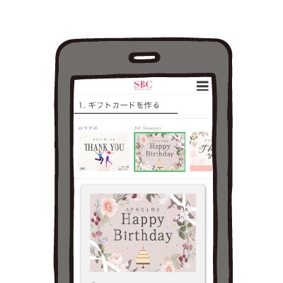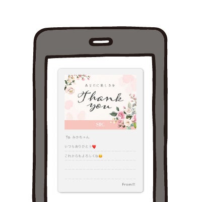 季節イベントに合わせたギフトカードはもちろん、定番の誕生日や日頃の感謝など、用途に合わせた多彩なデザインを揃えております。また、ギフトカードに感謝のメッセージを添えて贈ることができます。