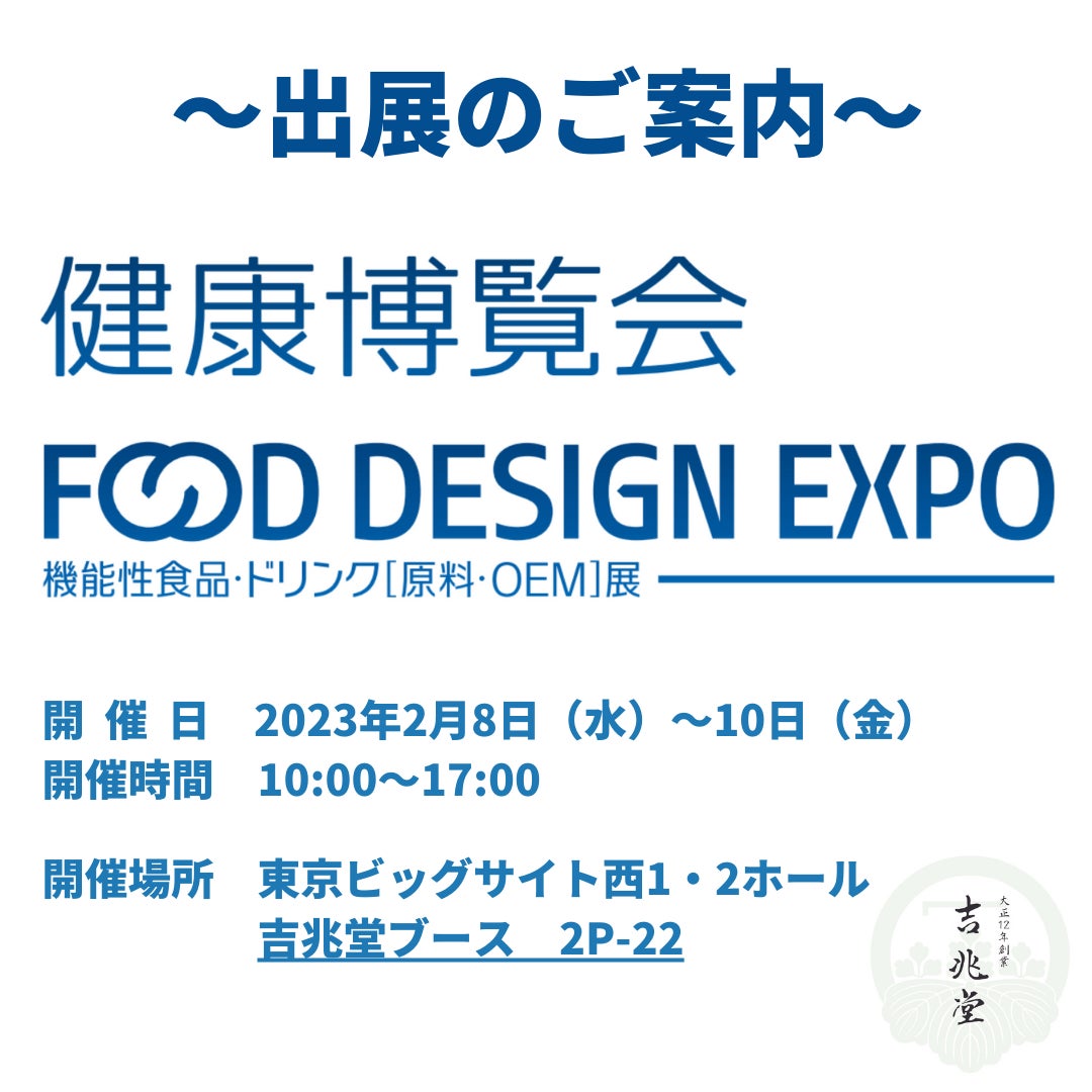 株式会社吉兆堂は、東京ビッグサイトで開催されます「健康博覧会」へのブース出展をお知らせいたします。