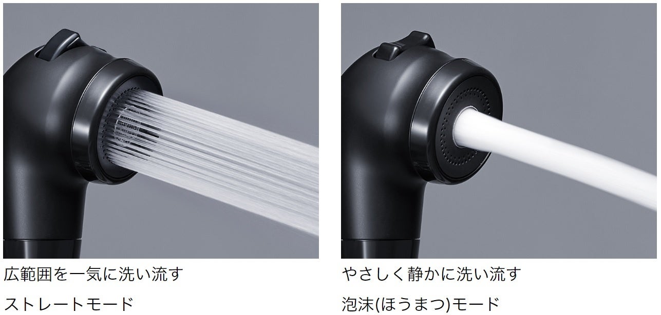 ※1 ストレートモードと当社従来品におけるファインバブルOFFモードの比較(水温40℃±1℃・ホース流量9L/分)
