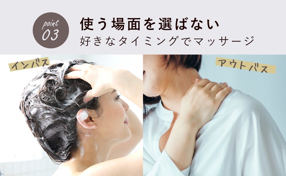 「インバス・アウトバス」どちらでも使えるので、好きなタイミングでマッサージできます。