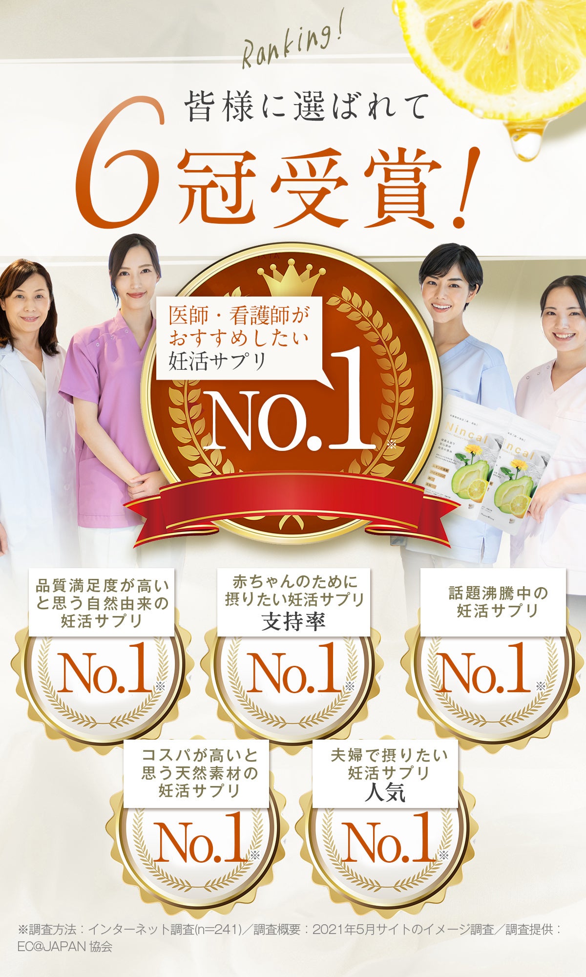 • 『Nincal – ニンカル – 』はその実力が認められ医師や看護師他たくさんの方達にも高く評価され、6冠を受賞した妊活サプリ