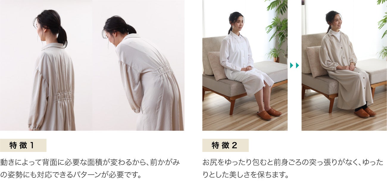 - 「暮らしの動作を機能的に美しく」いつでも快適に着こなせる服を目指しました