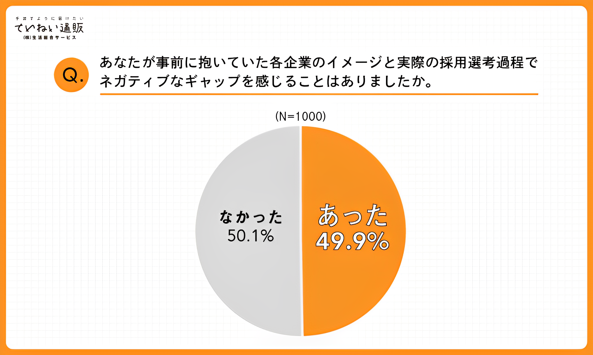 ■約半数が選考過程において事前のイメージと実際の印象でネガティブなギャップを感じている