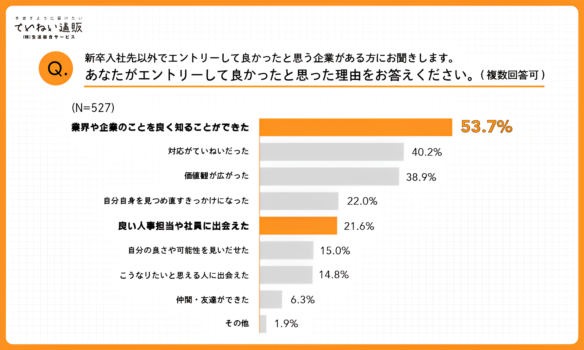 ・新卒入社先以外でエントリーして良かったと思う理由は「業界や企業のことを良く知ることができた」