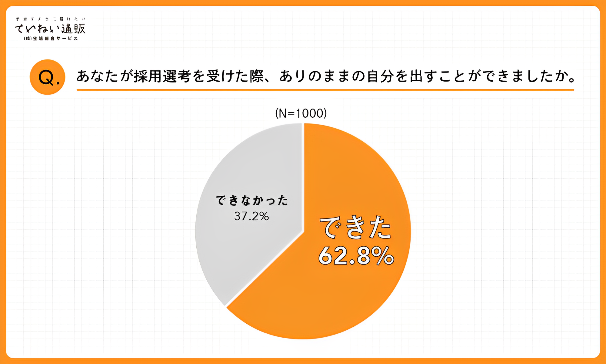 ・採用選考の際、6割以上が「ありのままの自分を出すことができた」