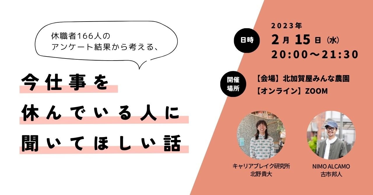 これらのイベントにて、休職者・離職者の現状をぜひ知っていただけますと幸いです。