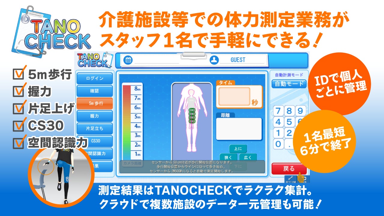 TANO CHECKはセンサーを用いることで、これまでアナログで行っていた計測を自動化、簡素化し、レポート機能も搭載されており体力測定の効率化を図ることができます。