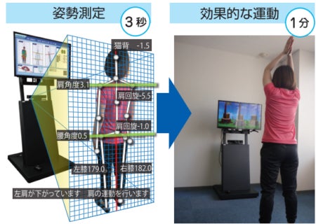 (3秒で体の歪みを測定)+運動のAIシステム(からだの歪みに合わせた1分間の運動プログラム)