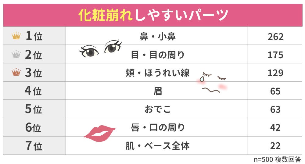 - 化粧崩れしやすいパーツ1位は「鼻・小鼻」