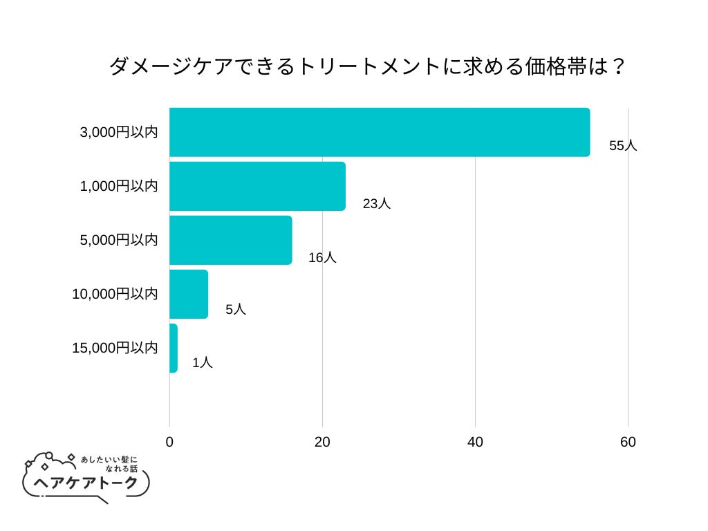 「ダメージケアできるトリートメントに求める価格帯は?」とアンケート調査した結果、1位は『3,000円以内』でした。