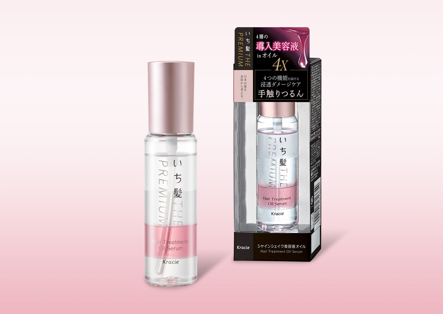 「いち髪 THE PREMIUM」は、ハイダメージ毛のケア方法として「トリートメントにヘアオイルを混ぜて使う」という美容のプロの裏技に着目。「ヘアマスク」と「美容オイル」、2つの剤形を混ぜて、2つの効果を発揮し、つるつるの仕上がりを叶える新アイテムを開発しました。