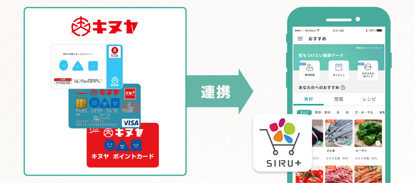 買い物データから栄養管理をするアプリ「SIRU+(シルタス)」を運営するシルタス株式会社(本社:東京都港区、代表取締役:小原一樹、以下「当社」)は、2月8日より株式会社キヌヤ(本社:島根県益田市、代表取締役:領家康元、以下「キヌヤ」)が展開しているキヌヤ全店鋪において、「SIRU+」の導入が決まりましたことをお知らせいたします。