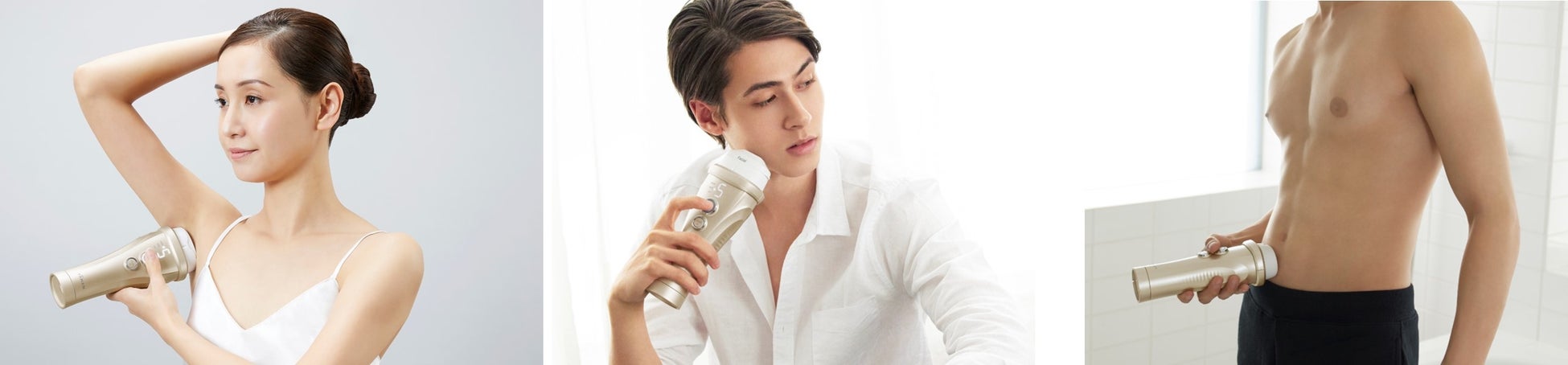 エステサロンで主流のキセノンランプによるIPL方式を採用。黒いものに反応してフラッシュするパワーが前モデルよりもアップ*5。照射回数は約40万発*6が可能、全身1300回以上*7ボディケアが可能。男性のヒゲや胸毛など、頑固なムダ毛もケアが可能なので、家族やパートナーとのシェア使いにおすすめ*8です。