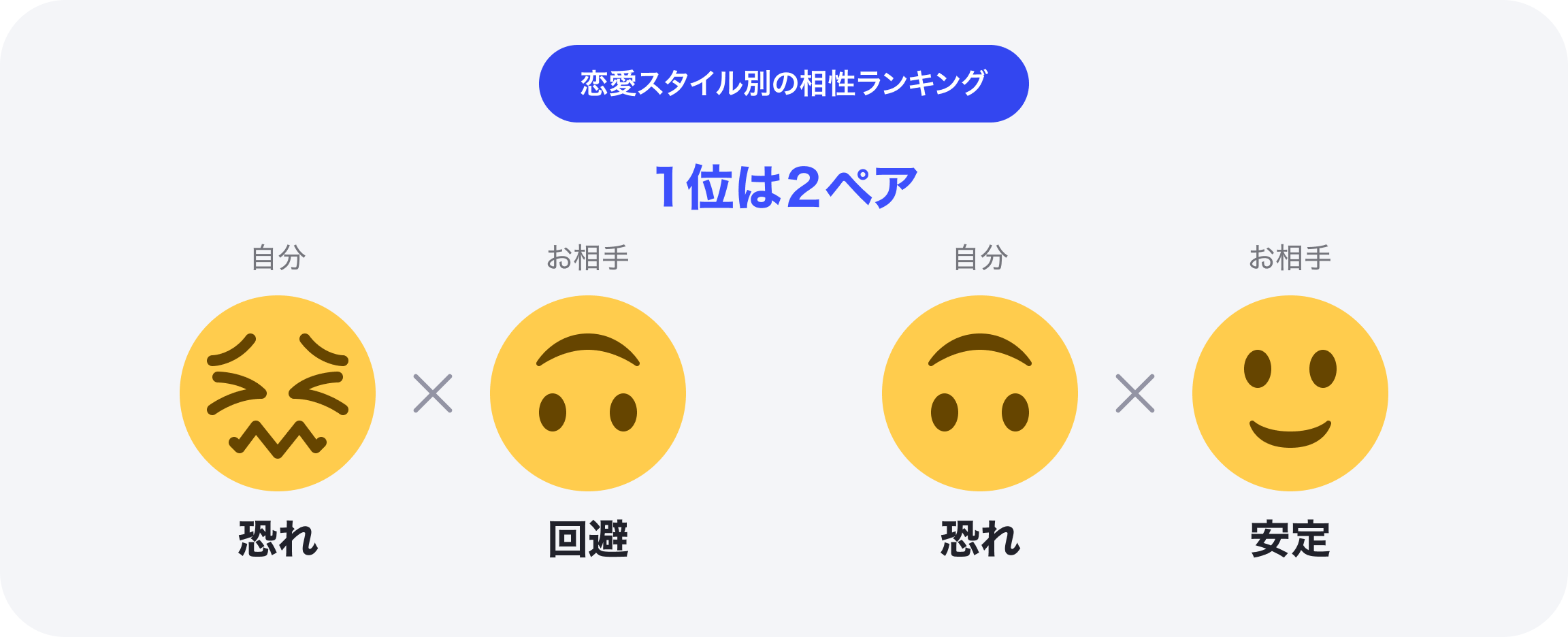(「自分:恐れ型」「相手:回避型」ペアは1位、「自分:回避型」「相手:恐れ型」ペアは11位)