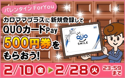 キャンペーン期間中にAI健康アプリ「カロママ プラス」を新規ダウンロード及び初期登録した方の中から、抽選で100名様に、パーソナルAIコーチ「カロママ」の限定イラスト入りQUOカードPay500円分をプレゼントします。