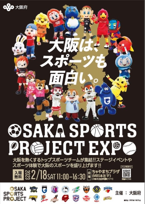 大阪府が主催するイベント「OSAKA SPORTS PROJECT EXPO」が、 Ex-CROSSと同日に、大阪・茶屋町にあるMBS本社で開催されます。大阪府が運営し、府内に活動拠点を置く16のスポーツチームが参画する「大阪スポーツコミッション」所属のアスリートらが多数来場します。両イベントで連携し、オンラインで2拠点をつないだバーチャル体験などを提供予定。