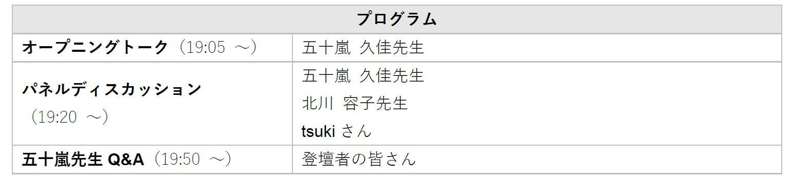 オープニングトークでは五十嵐先生より、片頭痛の概要と、女性と片頭痛の関係、頭痛発作だけでない生活への影響や片頭痛の治療などについてお話しいただきます。パネルディスカッションではゲストの悩みに対して先生からのアドバイスも交えながら、”片頭痛の、ホントの痛み”について話し合う予定です。また、参加者の皆様からの片頭痛に関するお悩みや質問に五十嵐先生が答える質問コーナーも予定しています。このように参加者の皆様が片頭痛について学べるコンテンツをご用意しています。