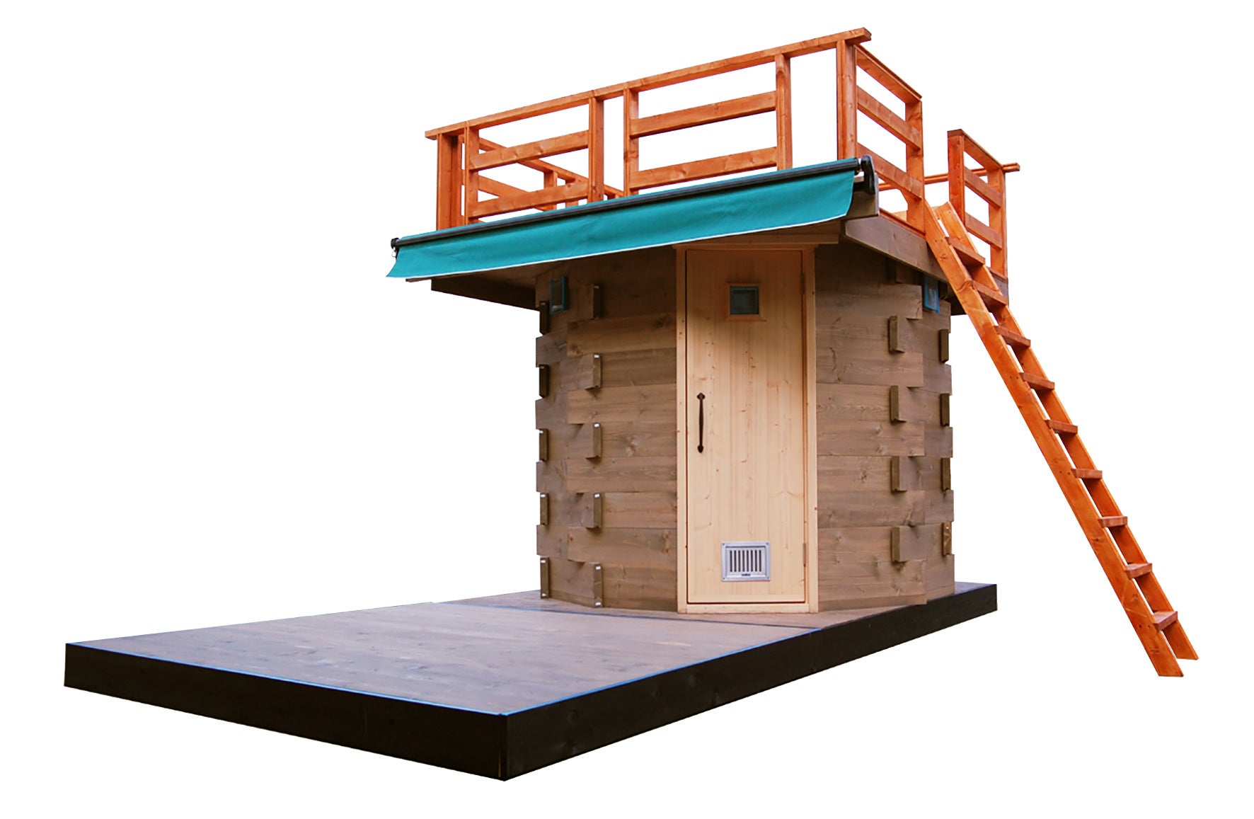 「Sauna Pao」はフィンランド産のホワイトパインを使用した小型サウナ。5平方メートル以下の小空間で利用することが可能です。新感覚の屋上整いスペースでサウナを楽しめます。
