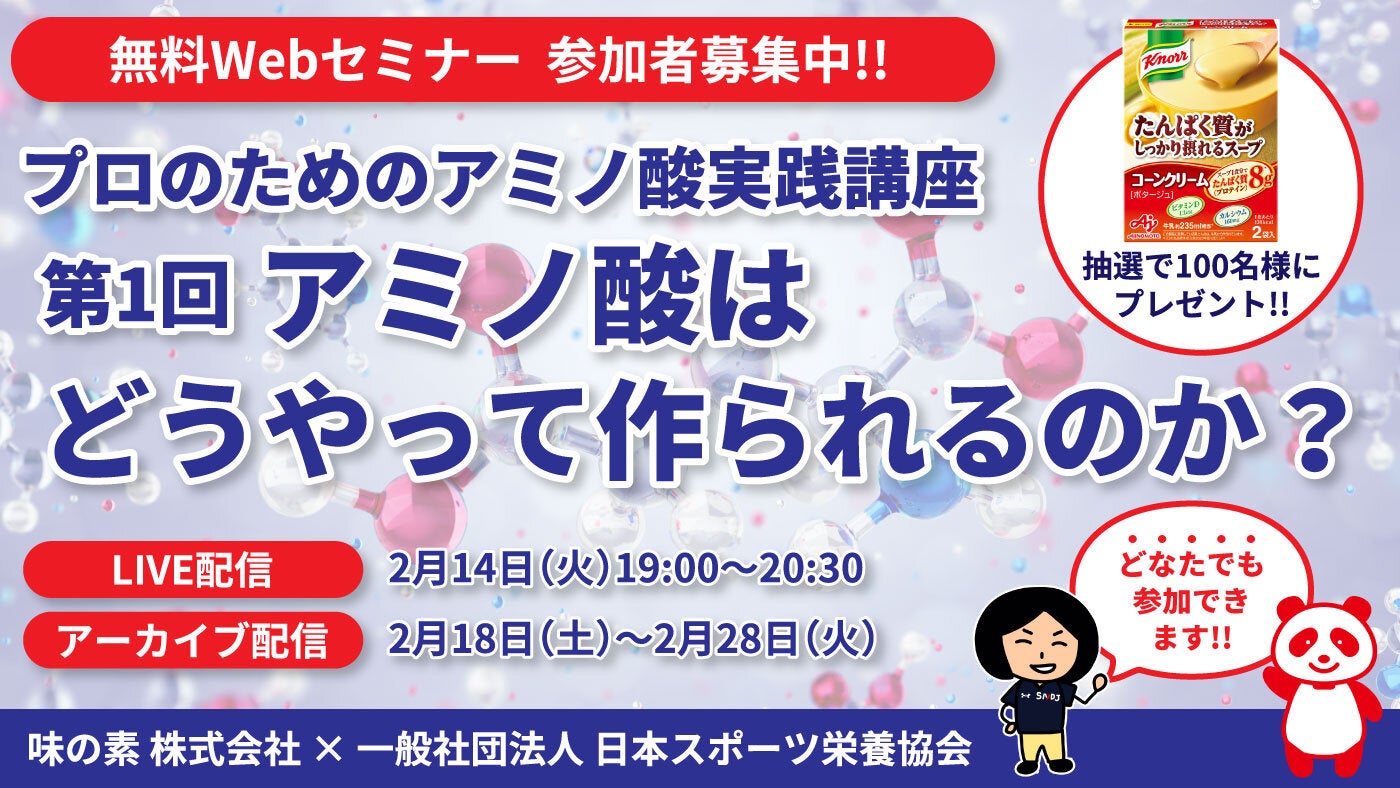 【参加者募集】味の素 × 日本スポーツ栄養協会共催 「アミノ酸」を学ぶ無料オンラインセミナーシリーズがスタート!!  2/14(火)19時~ 第1回アミノ酸はどうやって作られるのか?