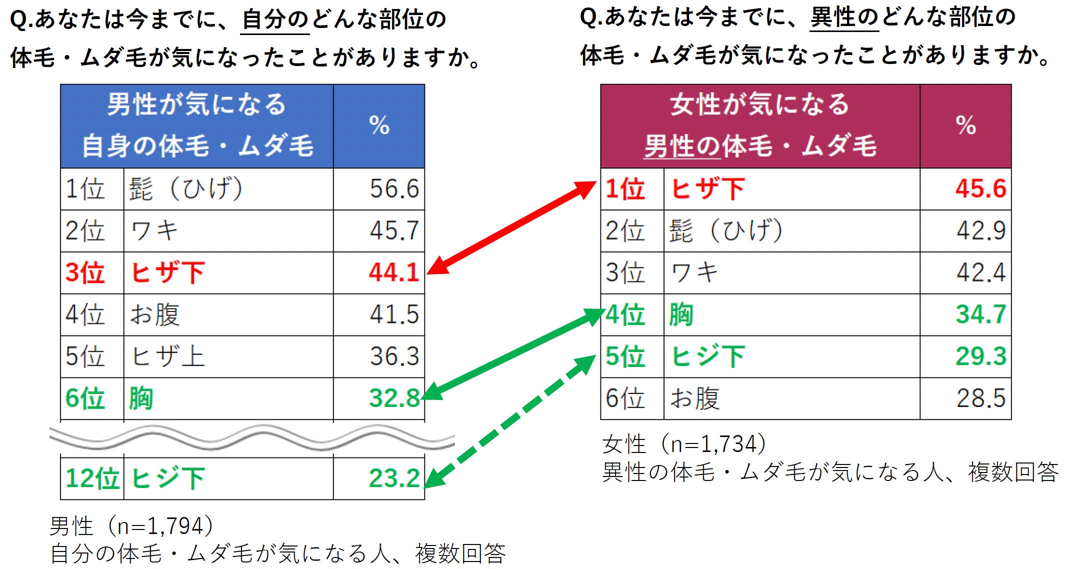 また今回の調査から、男性の「ヒザ下」、「胸」、「ヒジ下」のムダ毛が気になる女性が多いことが分かりました。男性は異性の目を意識した美容投資意欲が高いため(「美容センサス2022年下期」<美容意識・購買行動編>)、女性が気になる部位を脱毛しようというニーズも高まるかもしれません。