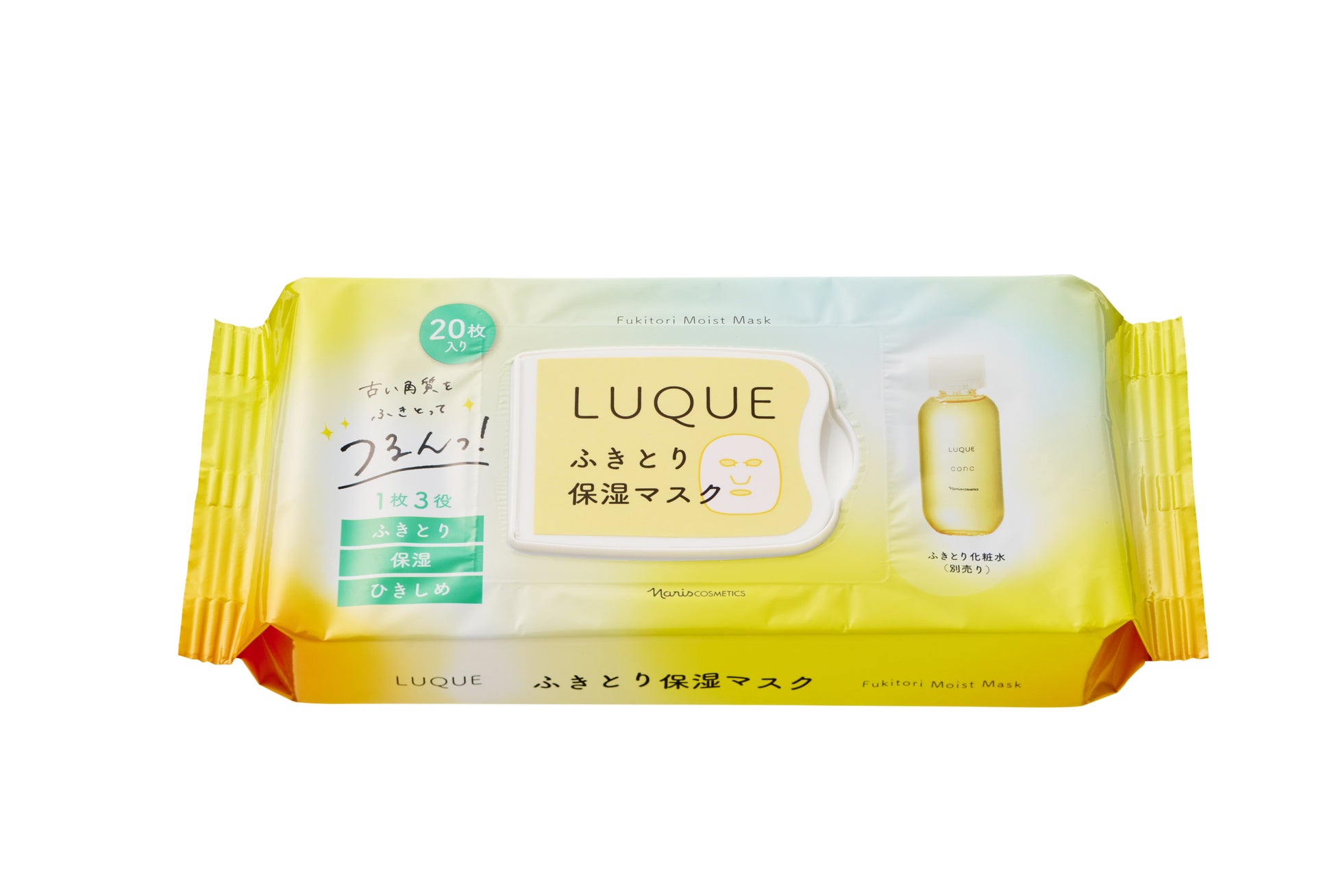 当社のふきとり化粧水の多くは、ふきとり化粧水を使用した後に、保湿化粧水を使用しますが、「ルクエ ふきとり保湿マスク」は、1枚で、ふきとり効果と保湿効果を併せ持つ簡単仕様。シートマスクによるパック効果も期待できます。使用後はつるんっと潤いあふれる肌に。
