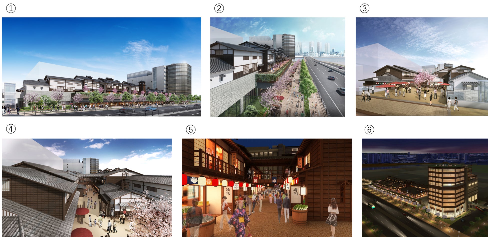 〇 豊洲市場に隣接する「千客万来施設(仮称)」は、商業棟「豊洲場外江戸前市場(仮称)」と温浴棟「東京豊洲 万葉俱楽部(仮称)」から成ります。商業棟では、築地の伝統を引き継いで、豊洲ならではの新鮮な食材等を活かした飲食・物販店舗を展開するとともに、御影石や淡路島の「いぶし瓦」などの伝統的な建築素材や、多摩産材などを採用した木造建築により、江戸の古い街並みを再現したオープンモールを展開します。