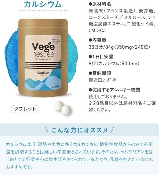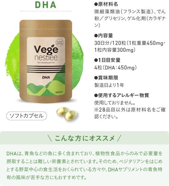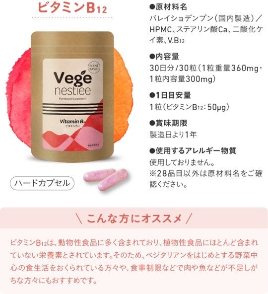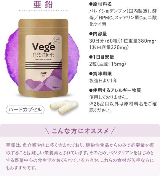 ベジタリアンの方々の“不足しやすい栄養素”に着目した5種類のラインナップでお届けします。