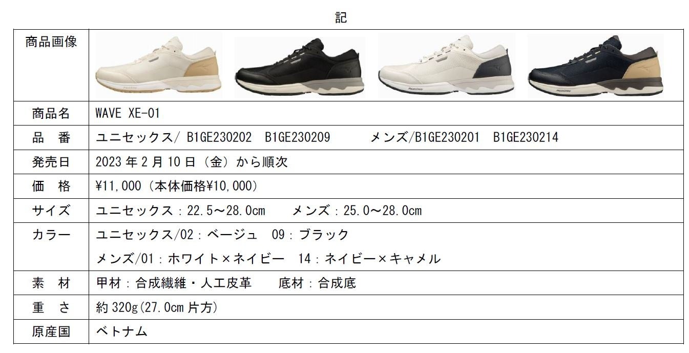 「WAVE XE-1」は、加齢や様々な環境変化によって健康に興味を持ち、日常的にウォーキングを取り入れようとしている人をターゲットにしており、歩行時のスムーズな歩き心地を追求したウォーキングシューズです。