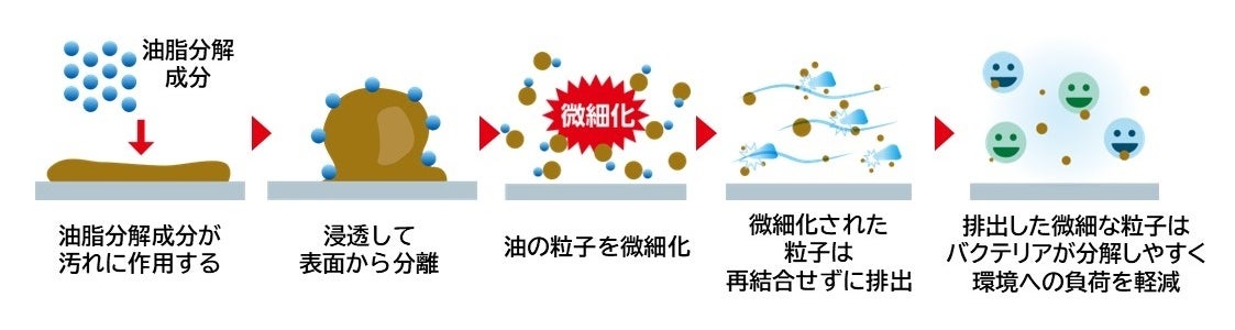 使用している”ヤシ油由来成分”の生分解性が高く、はがした汚れを細かく分解!