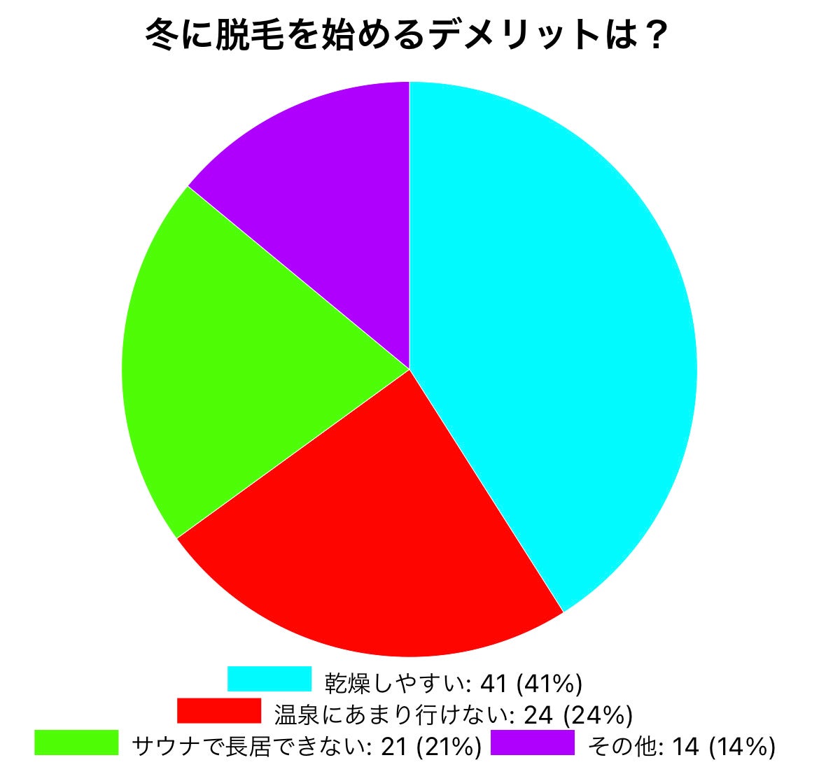 冬は寒いので温泉に行く方が多いですが、脱毛をしているとカラダを温めすぎては肌トラブルの原因になりますのであまり行くことができないという点がデメリットと感じている方も多かったです。