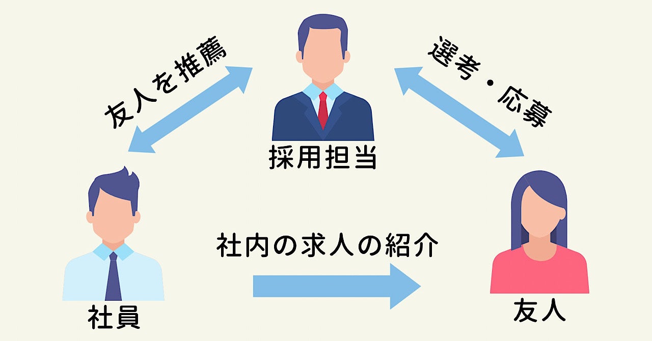 リファラル制度とは、既存社員からの知人・友人紹介による採用手法のこと。詳しく言うと、企業が自社の社員に対し、募集をかけている求人にマッチする血縁関係にある方や親族だけでなく、知人や友人を自身の企業へ紹介して採用採用する手法のことを言います。