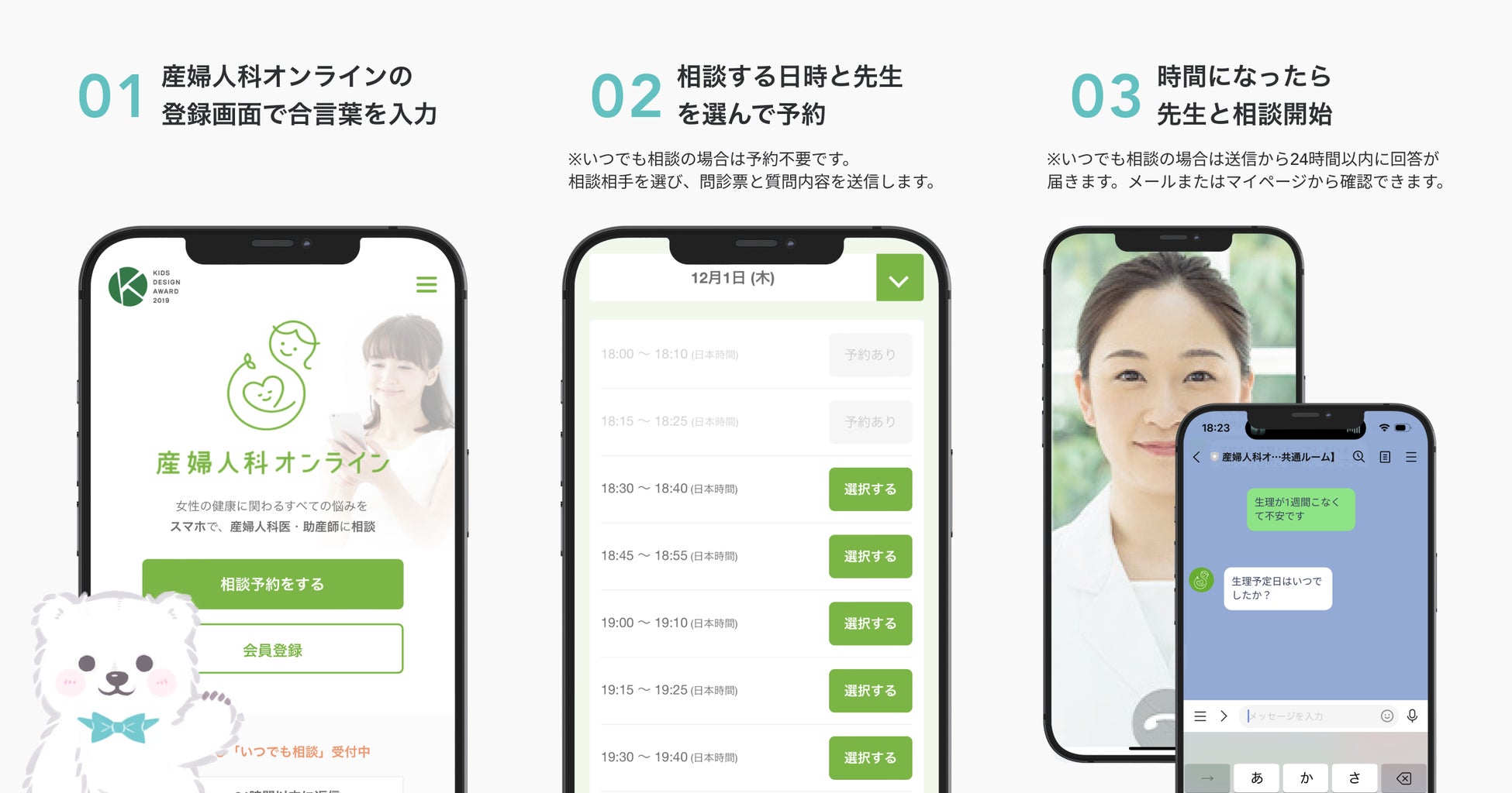 もに、必要に応じ適切な受診に繋げることができるよう、『産婦人科オンライン』との提携を開