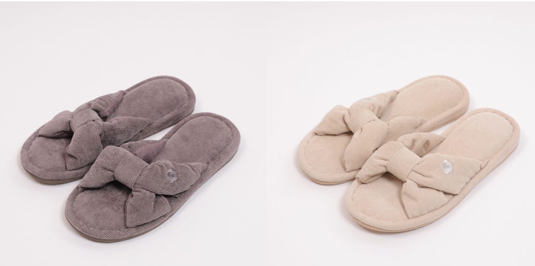 かかと部分にクッションが入っており、履き心地の良いコーデュロイ素材のスリッパ。クロスストラップタイプで、足にフィットし、歩きやすさにもこだわりました。