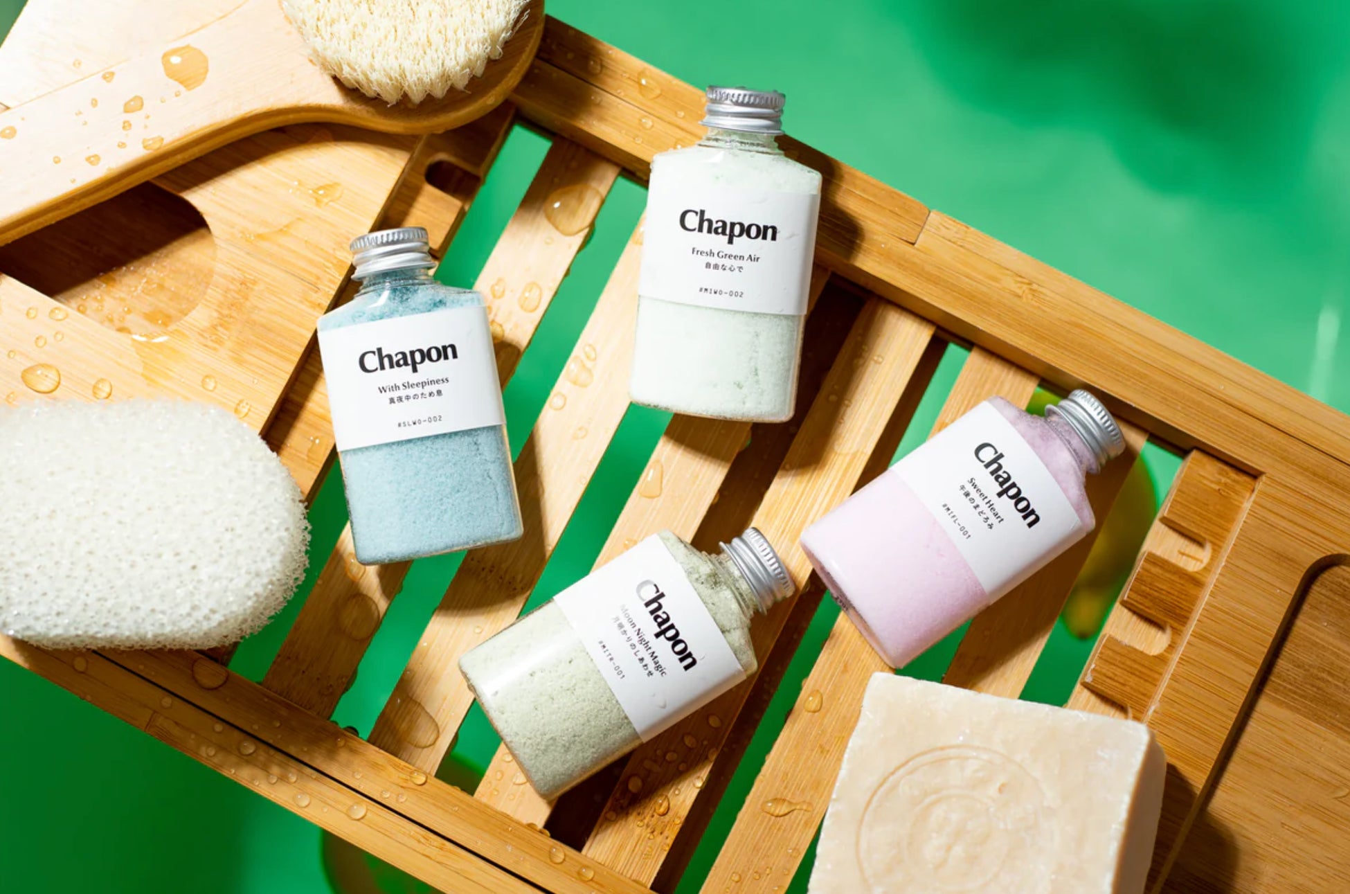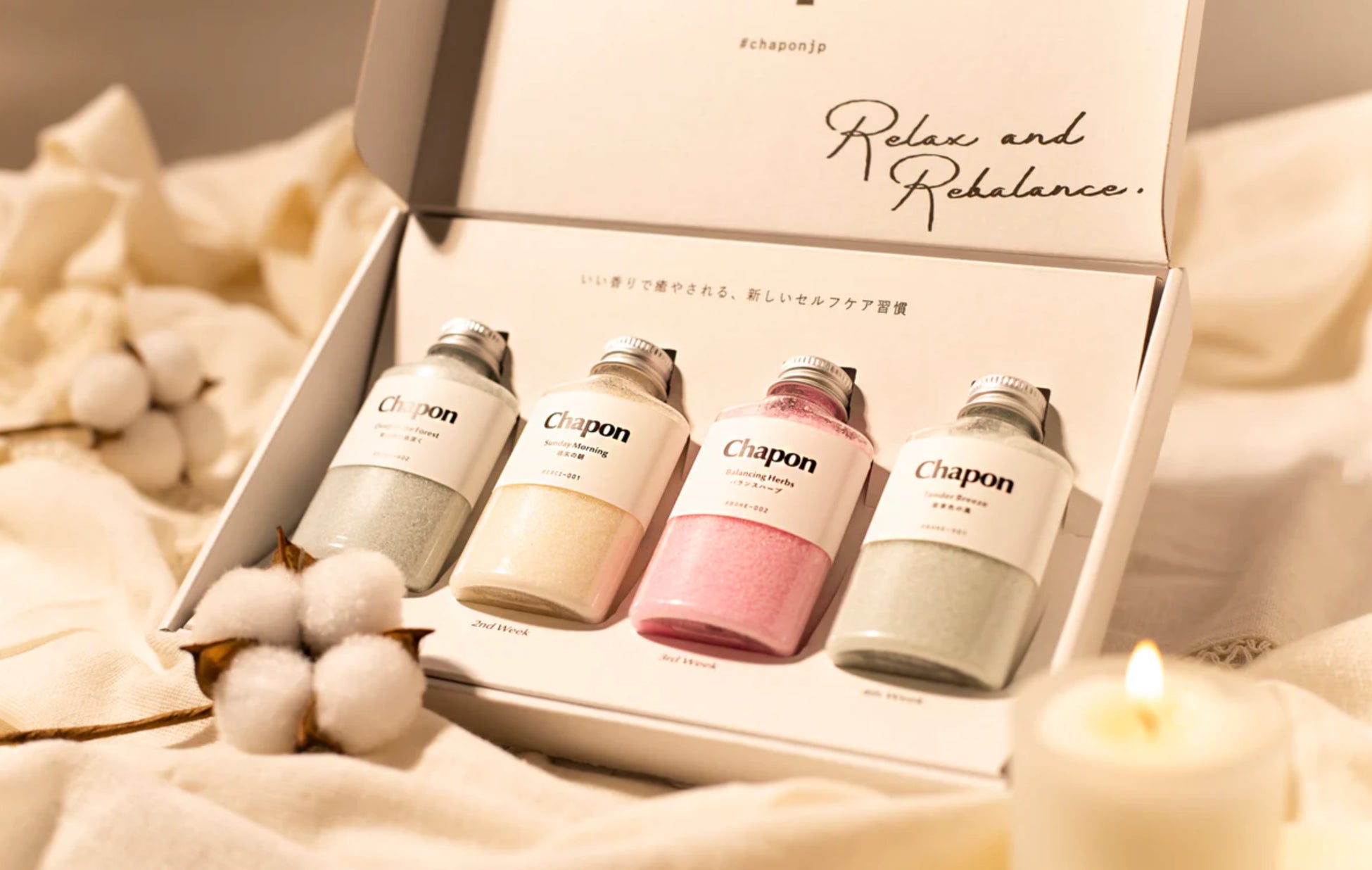 本展示会では、バスソルトとして史上初「グッドデザイン賞」を受賞した「天然アロマ入浴剤 Chapon(チャポン)」で人気のお疲れ気分をデロデロに溶かす「カラダの疲れ 4本セット」、温浴効果を通して睡眠をサポートする「睡眠の質コレクション 2本セット」のほか、本展示会で新しく展開される女性向けギフトに最適な「感謝伝える癒しの香り 4本セット」などの各製品を展示します。ぜひ、お立ち寄りください。