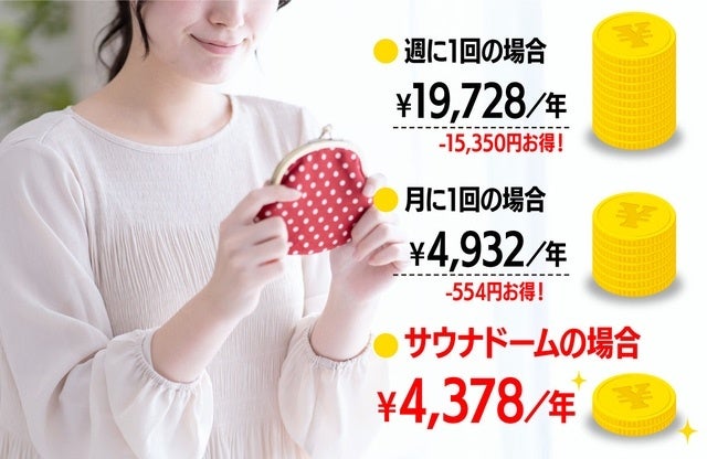 ⇒その差-15,350円!約1/4以下のお値段でいつでもサウナが楽しめます!