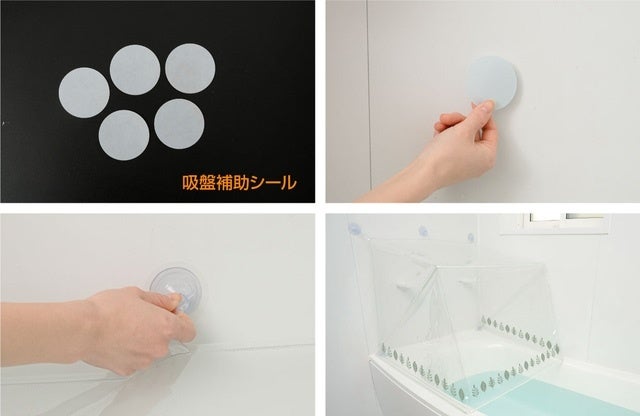 エンボス加工が施されたお風呂の壁は、吸盤が付かない場合があります。その際は、付属の吸盤補助シールをご使用ください。