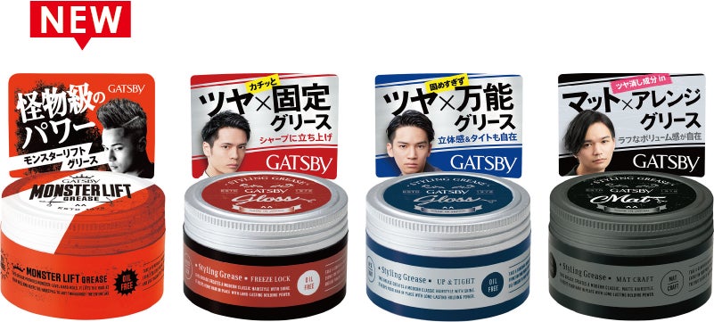 そこで、大人オシャレなヘアスタイルが作れる「ギャツビー スタイリンググリース」から、シリーズ最強の整髪力とキープ力を備えた「モンスターリフトグリース」を新発売します。