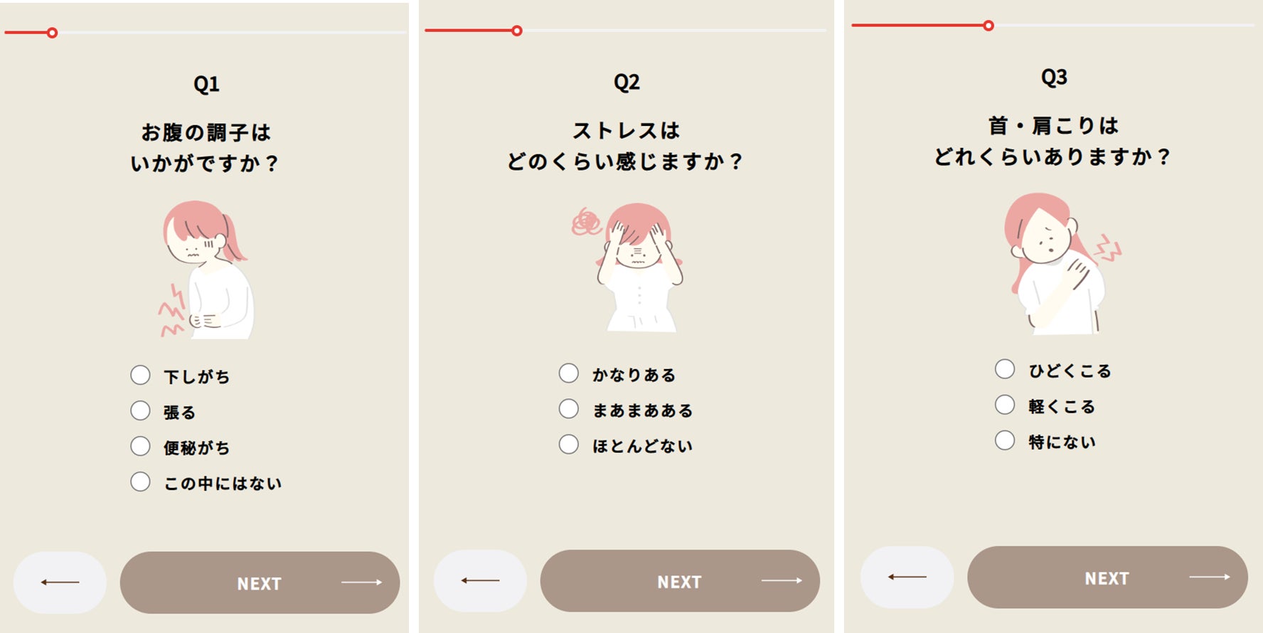 お手持ちのスマホやタブレットからQRコードを読み取り、特設サイトで日頃気になる症状をチェックしていくだけで、漢方の考えに基づいた5つの体質タイプ(気虚、気滞、瘀血、血虚、水滞)のうち、自分がどの体質に当てはまるのかを知ることができる仕掛けがあります。サイト上では、体質ごとの「カルテ」が表示され、体質の解説はもちろん、起こりやすい不調や身体にあった食材などを知ることができます。