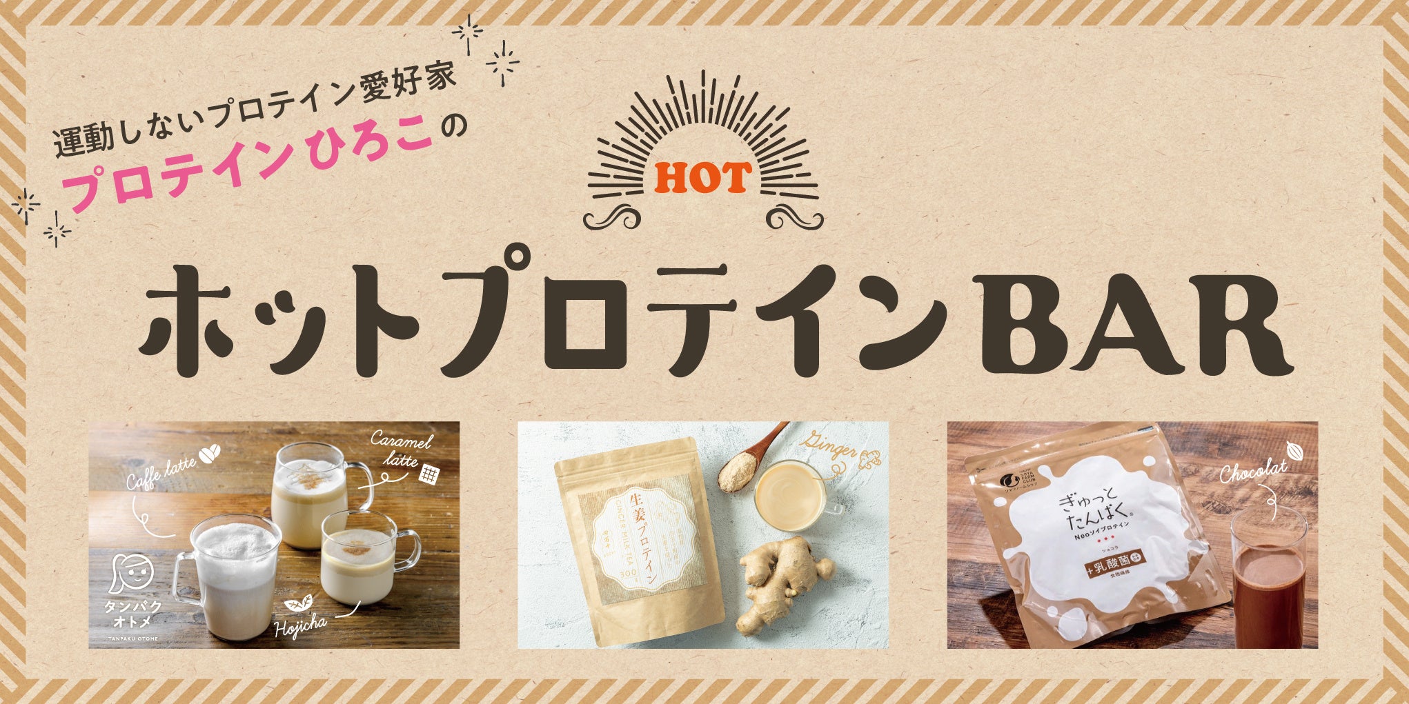 「寒い冬に冷たいプロテインを飲めない…」とこの時期はプロテインをやめてしまう女性が多いのですが、「ホットプロテインBAR」で新たなプロテインの楽しみ方を提案いたします。