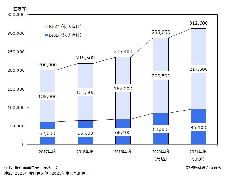 オンラインスクールの市場規模はコロナ禍以降、対面教育の制限もあり需要が急激に高まってきております。実際に、2017年は2,000億円の市場規模に対して、2021年(予測)は、3,126億円(2017年比56.3%増)と成長を続けています。