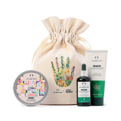 【数量限定】ザボディショップ人気のスキンケアシリーズ「エーデルワイス」製品が入ったオリジナルポーチ付き限定キットとノベルティトートバッグ