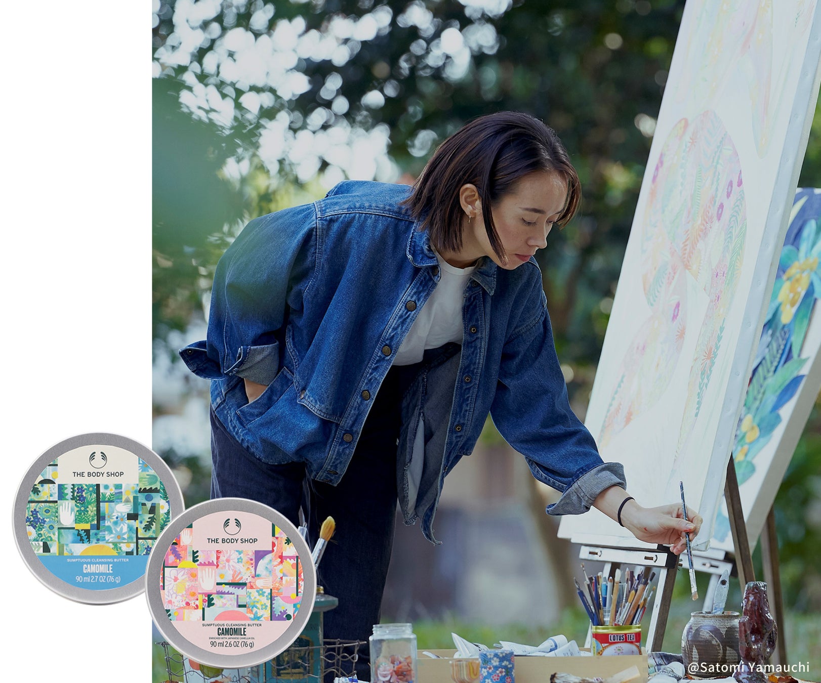 「より公正で美しい世界のために立ち向かう」というブランドパーパスのもと実現した今回のコラボレーション。ブランドの理念に共感するアーティストが特別に描き下ろした作品を店舗環境や製品パッケージに起用し、共にメッセージを発信していきます。2023 年3 月3 日(金)にリニューアルオープンするザボディショップ新宿店を皮切りに、ニキ ローレケ氏描き下ろしのデザインを纏った人気製品カモマイルシリーズやオリジナルポーチ付きキットの限定販売を開始します。さらに、新宿店の内装や什器にもニキ ローレケ氏のアートが施され、店舗を訪れるお客様にお買い物をしながらブランドパーパスを感じていただける空間に生まれ変わります。